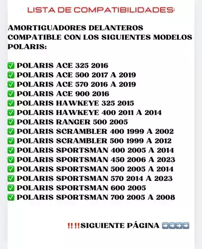 Amortiguadores Delanteros P/ Polaris Número De Parte 5430806