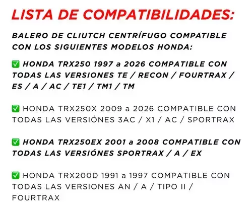 Clutch Húmedo Centrífugo Balero Honda Trx250 250x 1997-2024