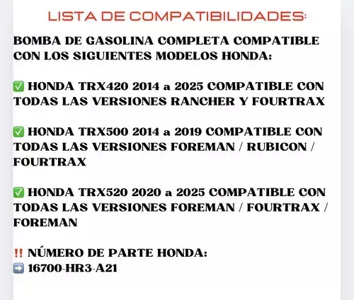 Producto: Bomba Gasolina Honda Trx520 Foreman Rubicon Fourtrax 2020-25.