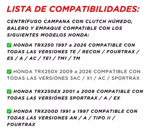 Producto: Campana Centrífugo Clutch Balero Honda Trx250x Ac 2009-2026.