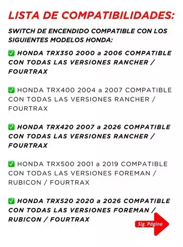 Producto: Switch Encendido Honda Trx650 Rincón / Fourtrax 2003-2005.